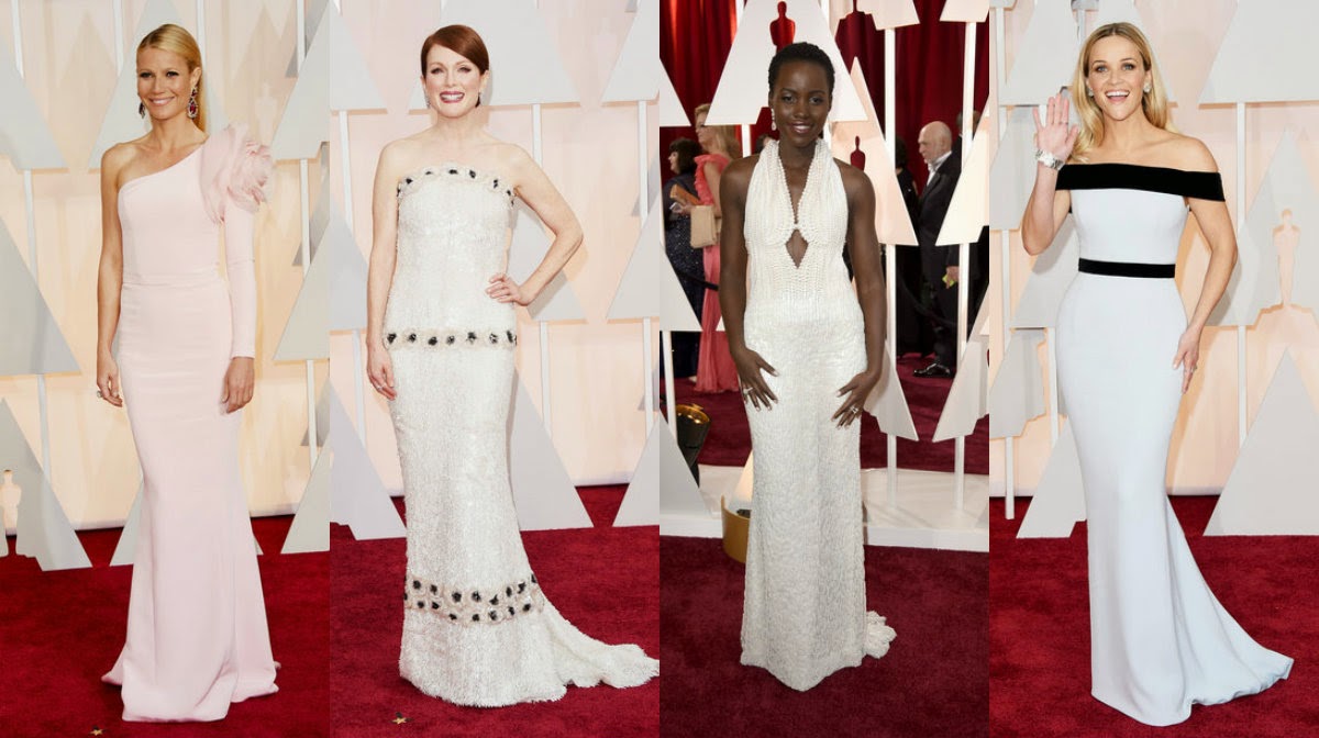 Como sempre Lady Gaga excêntrica apareceu com um vestidão branco e luvas vermelhas. Keira Knightley gravidíssima e um vestido todo fofo! Do outro lado, Melanie com um vestido preto básico, porém muito lindo e a Dakota, atriz de 50 tons de cinza, apostou em um vestido vermelhão, com uma alça brilhante em um dos ombros. Não foi fácil escolher um preferido, não pela beleza, é que não me agradaram. Mas, se eu tivesse que escolher um desses para vestir, seria do da Dakota Johnson.